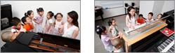 有的时候,老师需要把孩子们召集到钢琴前做视听练习。一群孩子离开座位走到教室前方,几乎把老师团团围住,她双手触键,弹奏时始终看着孩子,眼睛来回轮过每一个孩子。