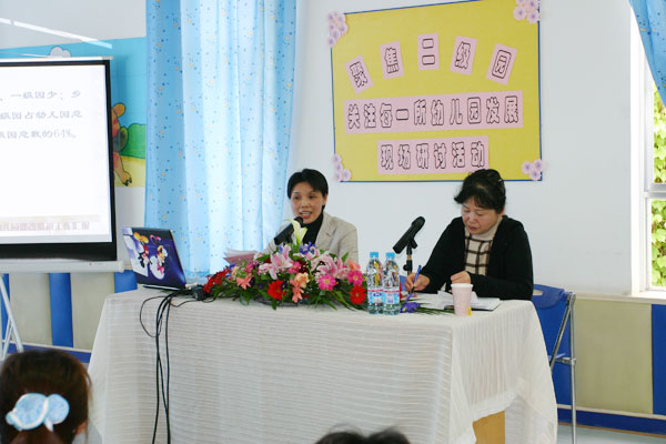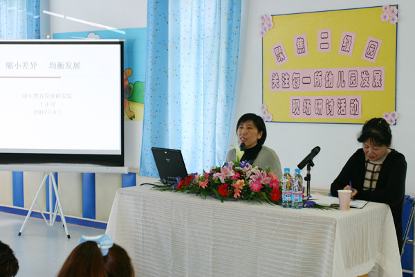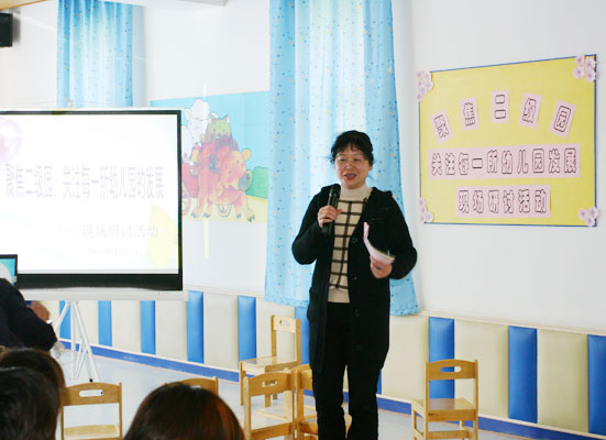 “作为一个二级园,我们能有向全市教研员请教的机会,真的很感动。”杨浦区控江四村幼稚园曹海红园长结合自己从示范园教师走到二级园园长的角色转变的切身体会,特别感到市区《三年行动计划》的颁布实施带来了二级园发展的春天。2007年4月23日,全市教研员在杨浦区控江四村幼稚园进行了“聚焦二级园,关注每一所幼儿园发展”的现场研讨活动。本次活动既是对从本学期开始的教研员研修的组成部分,也是开学初黄琼老师所提出的聚焦二级园的教研任务的具体落实。