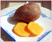 | 营养小贴士:首先红薯含有多种不易被消化酶破坏的纤维素和果胶,能有效刺激消化液分泌及肠胃蠕动,使大便畅通。其次红薯含有丰富的糖类、维生素、矿物质等营养成分,尤其是赖氨酸、β-胡萝卜素、维生素E和维生素C的含量较多。而每100克红薯的脂肪含量仅为0.2克,是大米的1/4,它是高营养、低热量、低脂肪食品中的佼佼者。第三,红薯是一种碱性食品,含有较多的钙、镁、钾等矿物质,钙和镁可预防骨质疏松症;钾能有效防止高血压,预防中风。 |