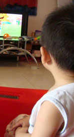 我们和丁子爸妈有点像,平常陪得太少,东东也是奶奶一直带着,但是他挺爱说话,也爱活动,可是他也喜欢长期“霸占”电视。他喜欢一边吃东西,一边玩玩具,一边看电视!奶奶要追着他喂饭,他才肯吃一点点,注意力不是在手上就是在电视上,忙坏了!