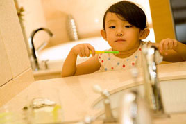 儿童中最常见的口腔疾病就是龋齿,又称“虫牙”。儿童口腔内的细菌黏附到牙面上,与唾液中的粘蛋白一起在牙面上形成牙菌斑,牙菌斑内产生的酸对牙齿的作用是使牙面钙溶解脱落,时间一长,脱钙处的牙面形成凹陷。凹坑越来越深,就成了龋齿。儿童发生龋齿,可影响牙颌系统的发育,如恒牙排列不齐等;龋齿的疼痛也会影响儿童的进食,甚至引起胃痛。因此预防龋齿至关重要,我们可从以下几个方面来呵护宝贝牙齿:◎保持口腔清洁 当宝宝开始长第一颗牙的时候,也就是大约从六个月开始就要给宝宝“ 刷牙”了,此时父母用干净的纱布包裹自己的食指沾净水帮宝宝清洗口腔,洗去牙齿及牙床上的附着物;一到两岁时,家长可以用指套式牙刷或幼儿牙刷帮助刷牙,每天早晚刷牙,饭后漱口 ;两岁半开始,父母应替幼儿选择此年龄段使用的牙刷,每日早晚两次,站立于幼儿身后,手把手教幼儿掌握正确的刷牙方法(拂刷法)。 相关链接:如何为宝宝选择牙刷牙膏 如何帮宝宝清洁口腔? ◎使用氟化物牙膏防龋 氟可以增强牙齿和骨骼的结构,还具有抑制细菌的作用,因此可以起到防龋的作用。最常用的是含氟牙膏,使口腔内保持在一个比较高的氟化水平,有利于抑制牙齿脱矿或使早期脱矿的牙齿组织再矿化,增加牙齿的抗酸蚀能力。 温馨提示:由于幼儿常常不能很好地吐出残留牙膏,体内氟化物如累积过多会导致氟中毒,如氟斑牙等。所以8岁之前应使用含氟低的儿童牙膏,或每半年到医院由口腔医生使用涂氟化泡。 ◎窝沟封闭磨牙和双尖牙的咬食物的面有许多细窄的窝沟,窝沟内有食物残渣和牙菌斑,有利于细菌的繁殖。由于窝沟太窄、牙刷毛不能进入窝沟内彻底清除牙菌斑,因此,磨牙和双尖牙的咬合面容易发生窝沟龋。窝沟封闭剂是一种高分子材料,使用这种材料封闭双尖牙和磨牙咬合面的窝沟,可以防止微生物和食物残渣进入窝沟内,从而预防窝沟龋的发生。乳磨牙的封闭时机,以3-4岁为宜。 第一恒磨牙封闭时机,以6-9岁为宜。 相关链接:不同年龄段防龋齿的不同预防法 8个坏习惯损坏宝宝牙齿 ◎养成良好的饮食习惯 五谷杂粮、豆类、奶及奶制品、鱼、肉、蛋、蔬菜、瓜果等这些食物除了含有大量的天然营养成分外,像粗粮、蔬菜、瓜果等粗糙的食物还有助于发挥咀嚼功能、促进唾液的分泌、有利于儿童颌面部的正常发育、对牙周组织的健康和牙面的清洁作用是有益的。 温馨提示:幼儿的乳牙刚萌出后,要尽量减少孩子每天吃糖或含糖饮料的次数,尤其不要晚上睡觉前吃甜食,吃甜食后一定要用清水漱漱口,最好给宝宝刷刷牙。” 相关链接:宝宝长牙期营养要跟上 断奶前后加喂硬食利于长牙 |