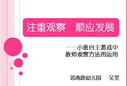 观察时的重点有幼儿认知、幼儿语言、幼儿交往、幼儿情绪、幼儿游戏主题、游戏专注度、材料使用、游戏常规几方面,并且依照年龄段不同而有不同侧重点。 闵行学前教育研训室倪冰主任指出,自主游戏要做到“五看”,一看环境材料,二看游戏时间,三看教师的介入,四看幼儿情绪,五看游戏分享交流中幼儿的综合素养……>> 看详细 |