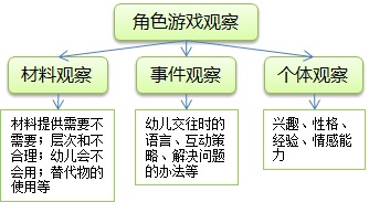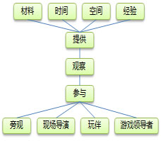 观察的方法很多,从观察目的来看,教师在游戏中的观察有两种,一是随机观察,及时捕捉幼儿从语言、动作、表情中所发出的信息,了解这个信息所反映出的幼儿的行为动机、幼儿的即时需要、幼儿的意愿、困难和情绪体验,作为指导游戏的依据,以便把握干预的时机,有针对性地做出适宜的应答行为,以满足游戏的需要,推进其活动;二是有目的的观察,其目的是了解幼儿现有的发展状况,发展的个别差异,发展的最近趋势,作为教育的依据。其他常见观察方法,有扫描观察、定点观察与追踪观察等。 |