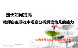 A:教师在游戏中的观察有两种:一是随机观察;二是有目的的观察。所谓有目的的观察,主要是根据事先设定的幼儿各种行为的发展水平指标,进行有针对性的观察。因此,有许多时候我们会根据教育和研究的需要,在游戏前设计观察内容,即确定目标儿童(有目的地观察某一个幼儿),或确定目标行为(有目的地观察某一方面的行为),以便通过观察分析确定有针对的教育方案。