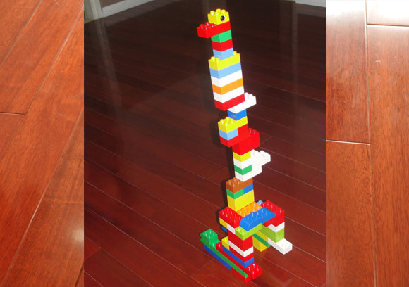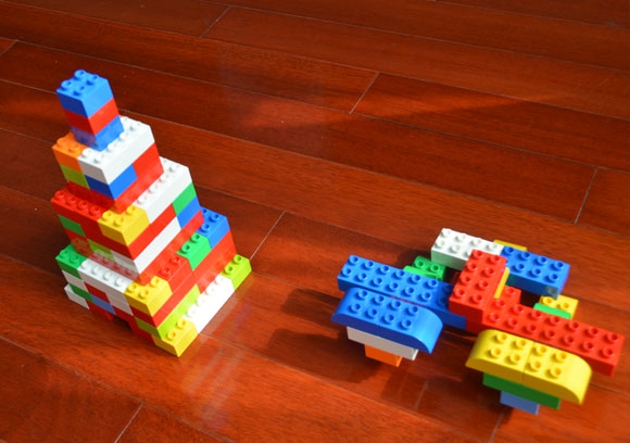 孩子不断恳求:“这里积木太少了,不够我用。”他失望地望着没顶的“艾菲尔铁塔”。