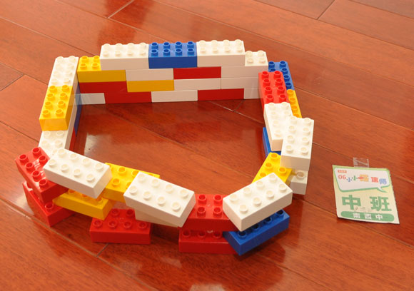 老师说:“比赛时间里,她努力地想用有限的积木搭一艘邮轮,显然,弧度对她有些难,好不容易摸索到技巧,还是没能锁扣住。所有的孩子都完成了或放弃了,只有她一个人,不动声色、专注地琢磨着她的邮轮,直到结束。专注力的养成在游戏里!”