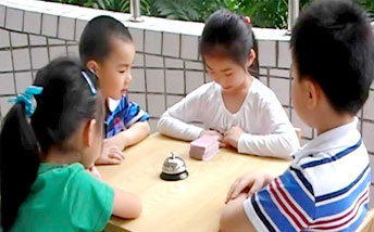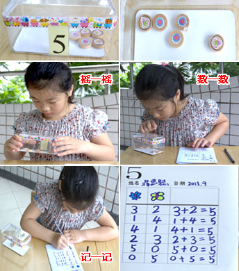 看着孩子越玩越带劲,我意识到:材料,不在于漂亮与精致;而在于它是否能带给孩子无穷的乐趣。 “水果争5”游戏所运用的经验依然是5的分解和组成。但,永远变化的过程、不可控的结果让简单的游戏牌有了无限的魅力。 设计过程中,大班教研组研讨拓展了我个人的视野和智慧,而一个成功的游戏在也开启全体教师的智慧大门,大家举一反三,设计出“眼明手快”、“眼力大考验”、“向左向右”、“兔妈妈找萝卜”、“捆木棒”、“找宝藏”、“翻翻乐“等一系列好玩的材料。 园长:“这个游戏须规则简单、激发快速反应,并正好挑战大班孩子存储记忆和心算的经验与能力,这就是让孩子百玩不厌的道理。”全文>> |