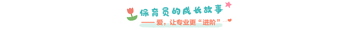 因为有爱,当孩子呕吐、便溺时,可以克服自身不适,迅速开始清理工作;当个别家长误解轻慢时,能够主动换位思考,耐心沟通,为孩子的成长助力赋能;因为坚守责任,所以我认真规范进行一日消毒清洁工作,连续8年,所在班级无一例传染病,做孩子健康的守护者,班级环境的美化者;因为积极进取,我完成大专学历进修,获得高级保育员资质,以更专业的素质水平助力幼儿发展。时间在幼儿的成长中流淌,我逐渐感知到,教育就是用自身力量去引导孩子、影响孩子。