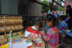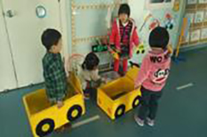 模拟日常生活情景,如去超市购物、过马路等,开展交往游戏,培养和加强孩子社会交往、应付环境变化的经验和能力。
